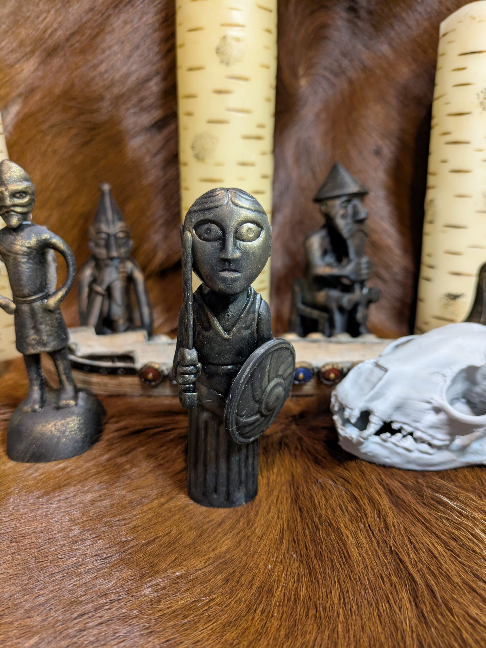 The Valkyrie from Hårby is a small figurine found near the village of Hårby on the island of Funen in Denmark. It was discovered by an amateur archaeologist in 2012. The figurine depicts a woman wearing a long, patterned skirt. Her eyes are very clearly delineated, and her hair is tied at the back of her neck. In her right hand, she holds a sword, in her left a round shield with a salient shield boss